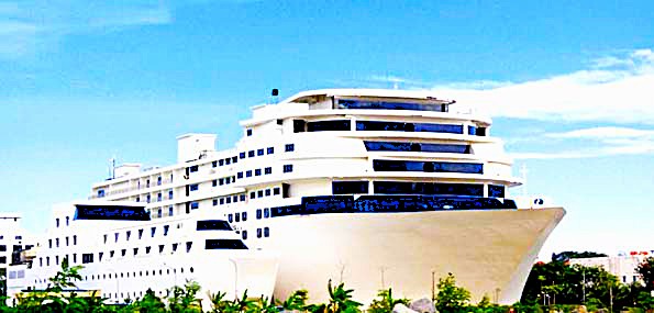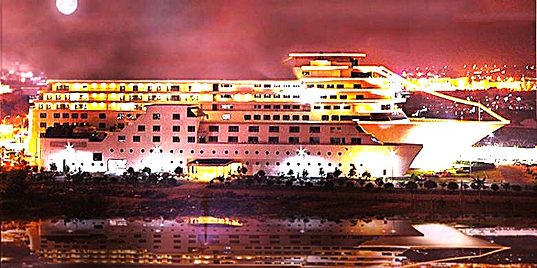By Socrates – Kapal pesiar itu seperti terpacak di pantai dan menghadap ke laut. Dari kejauhan, tampak gedung pencakar langit Singapura. Namun, ini bukan kapal pesiar sesungguhnya. Tapi, sebuah hotel yang dirancang seperti kapal pesiar bernama Pacific Palace Hotel.